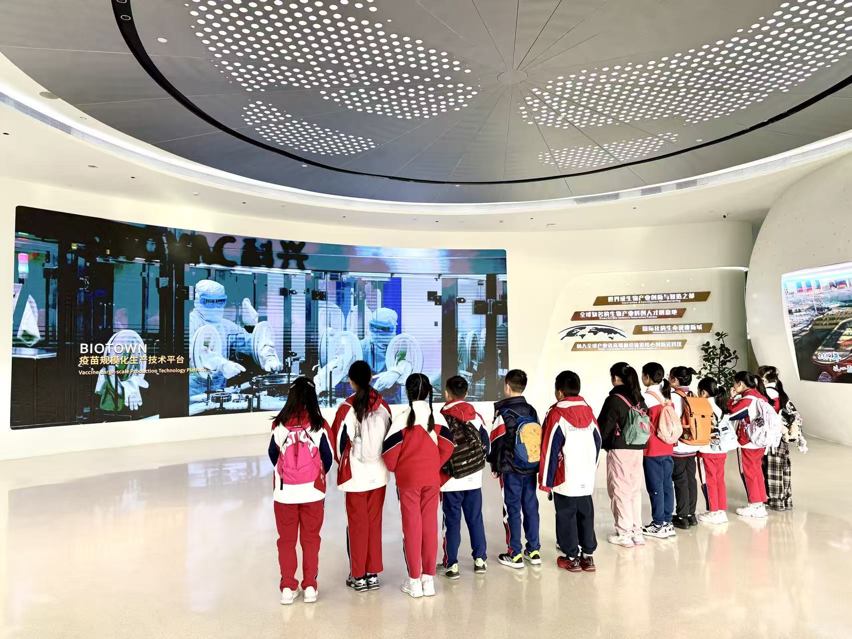 研学首站始于天府国际生物城文化中心。在这里,同学们通过沉浸式的影像资料与专业的产业解读,系统梳理了生物医药科技的脉络。当巨大的规划沙盘呈现在眼前时,未来产业的宏伟蓝图变得清晰可见,引发了同学们的阵阵惊叹与热烈讨论,也对脚下这片创新热土有了更深的理解。