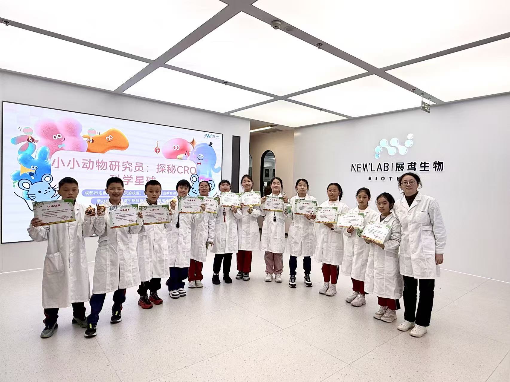 11月20日,一场别开生面的职业生涯教育研学活动在展鸢生物拉开序幕。来自成都市泡桐树小学(天府校区)的13名同学,整齐穿戴完成了角色转换,以“小小动物研究员”的身份,踏入了一个真实而严谨的科学世界。