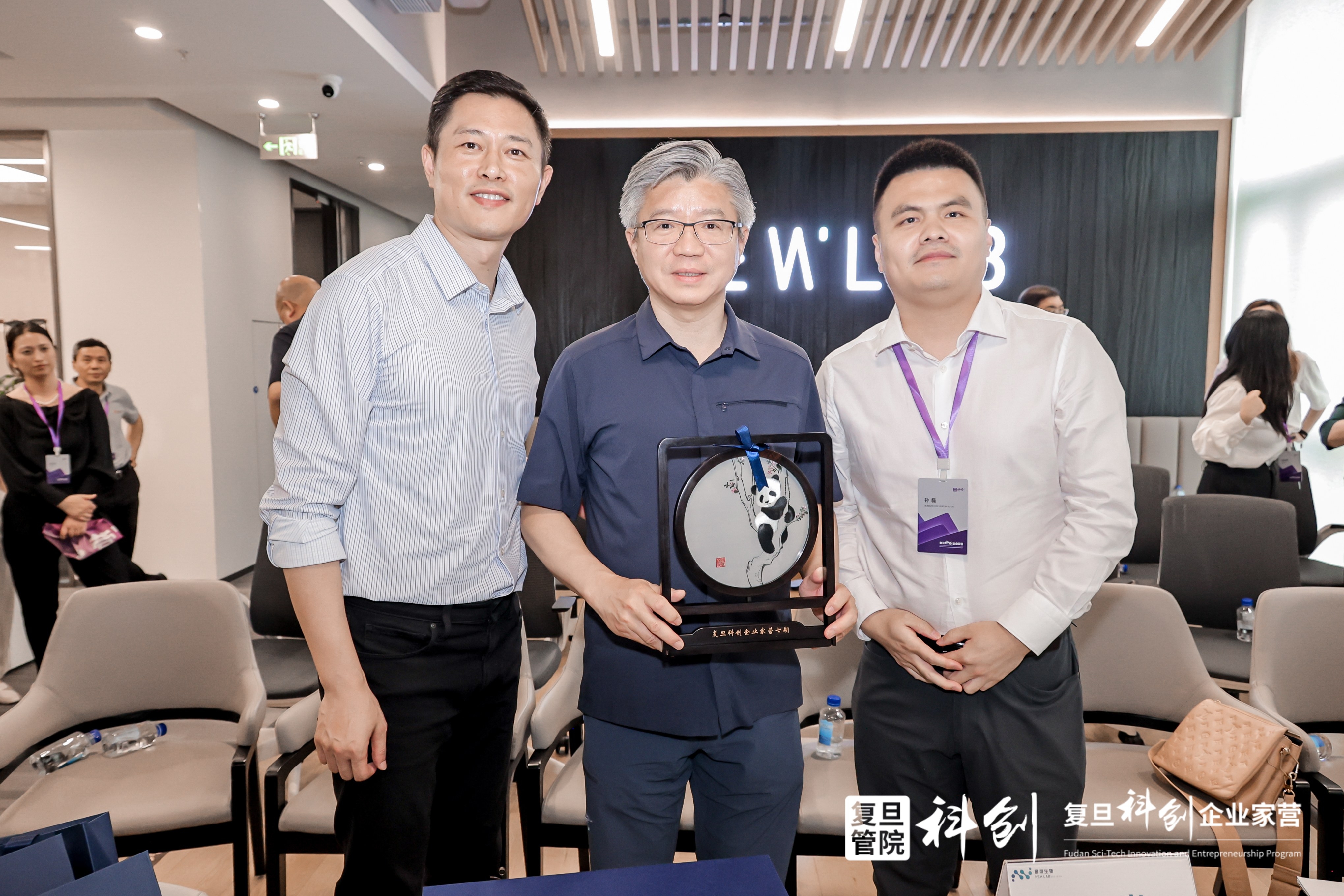 活动最后,展鸢生物为远道而来的复旦老师和企业家同学们准备了极具成都特色的定制熊猫蜀绣,陆雄文院长也为展鸢生物颁发了活动荣誉证书。