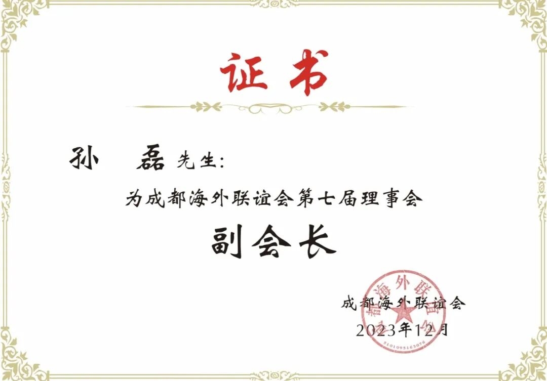 展鸢生物联合创始人孙磊参加成都海外联谊会第七届理事会第二次常务理事会