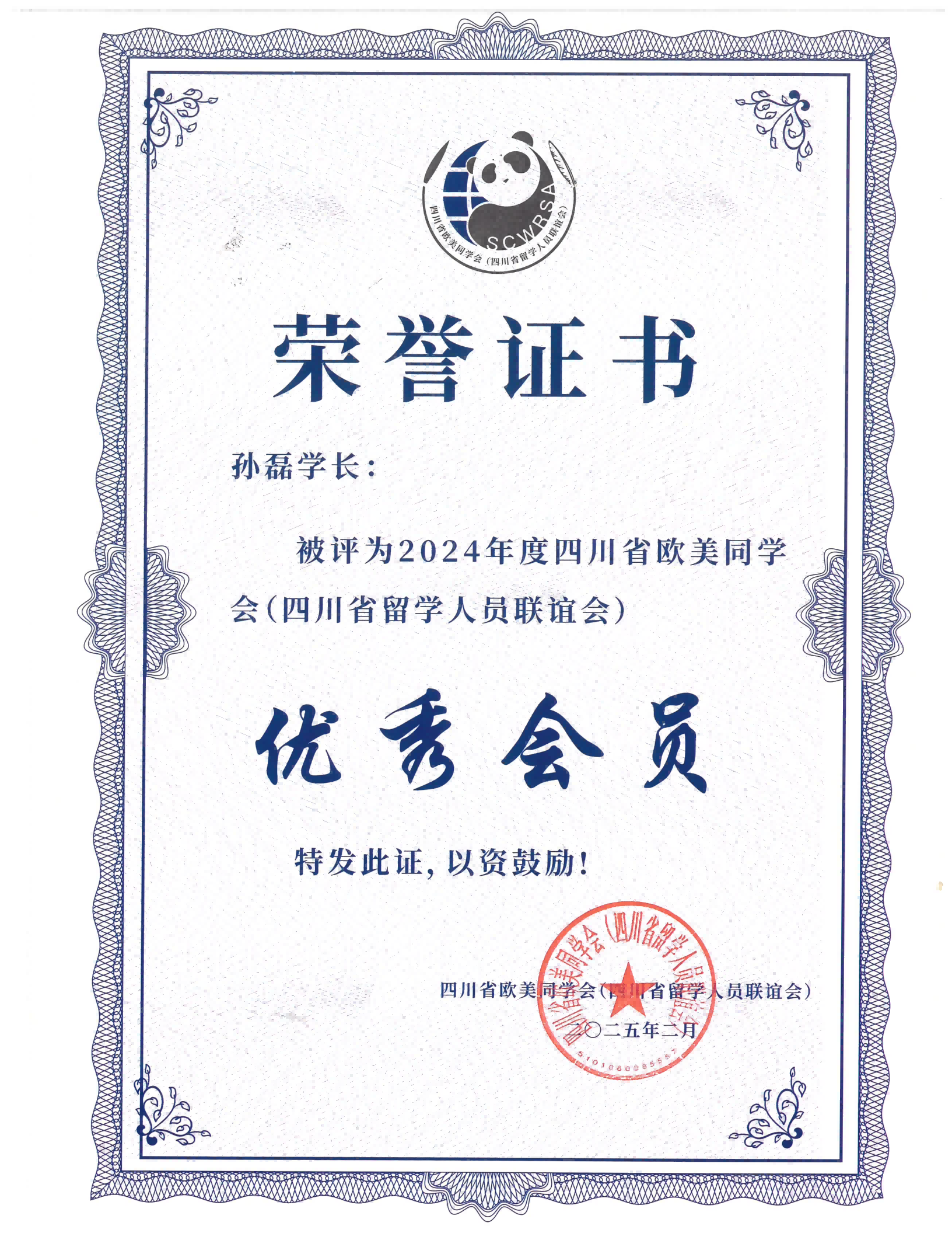 展鸢生物创始人、董事长孙磊荣获四川省欧美同学会2024年度“优秀会员”称号