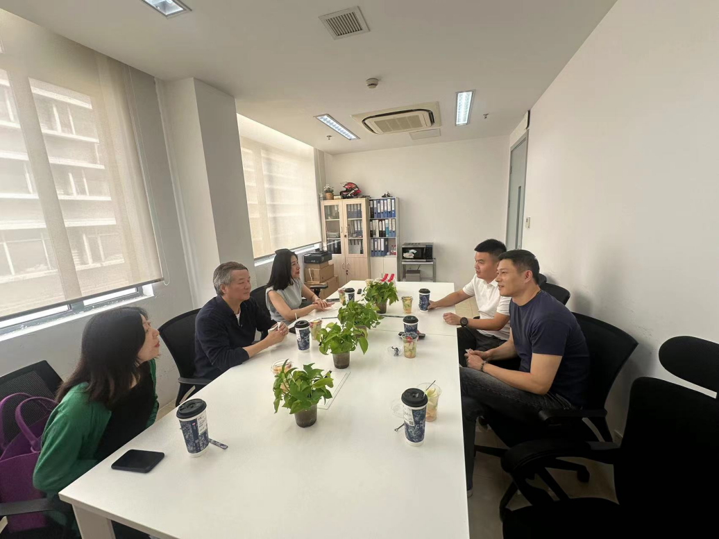 继2024年6月15日复旦大学管理学院科创营的老师们和企业家同学们来到展鸢生物成都实验平台温馨家访后,2024年8月20日上午,复旦大学复杂体系多尺度研究院院长马剑鹏、复旦大学管理学院科创办主任岑岺老师一行来到展鸢生物上海实验平台访问交流。展鸢生物陈立新、孙磊、田詠怡热情接待并陪同交流。