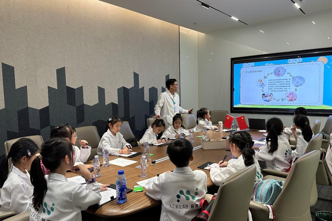 展鸢生物的专家老师为小实验员们,带来一堂生动有趣的科普课,卡通风格的PPT,深入浅出的讲解,揭开实验动物的“神秘面纱”,小实验员们积极互动、踊跃提问,看起来深奥难懂的生物知识,丝毫挡不住大家的好学热情。