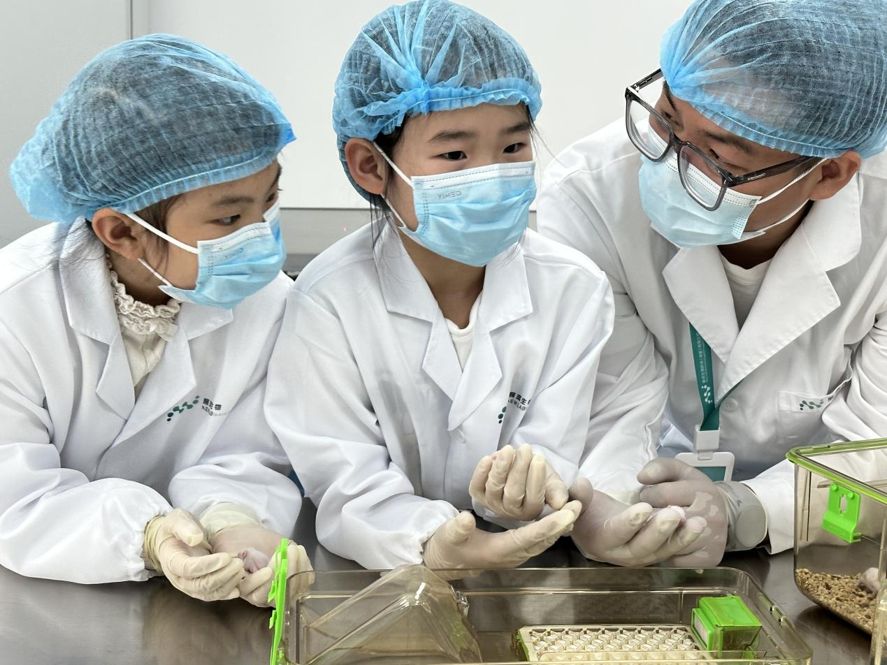 本次研学活动,小实验员们有幸,在展鸢生物4楼动物实验平台正式投用前,亲自走进实验室参观设施设备,“原来小鼠生活环境是这样的呀”,小实验员们不由得发出连连惊叹,并与专家老师们热烈的交流讨论。