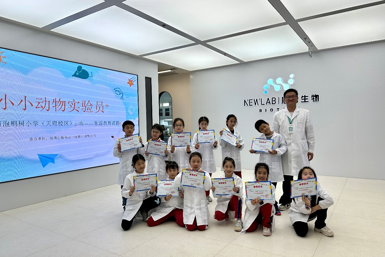 2023年11月8日,一场别开生面的研学活动,在展鸢生物拉开序幕,来自成都市泡桐树小学(天府校区),3年级1班的12名同学,穿上定制的白大褂,变身“小小动物实验员”,开启了一场沉浸式职业体验之旅。