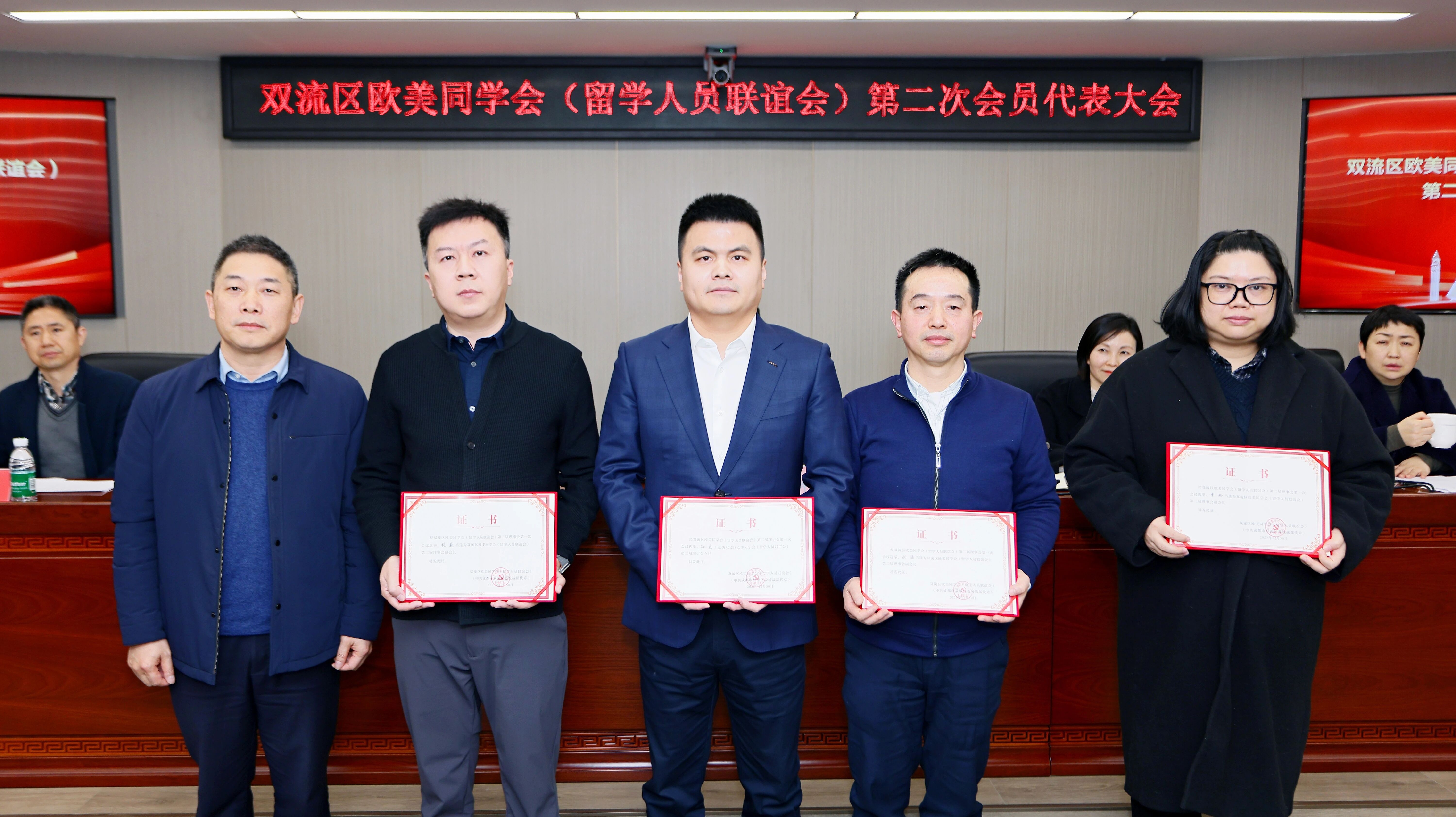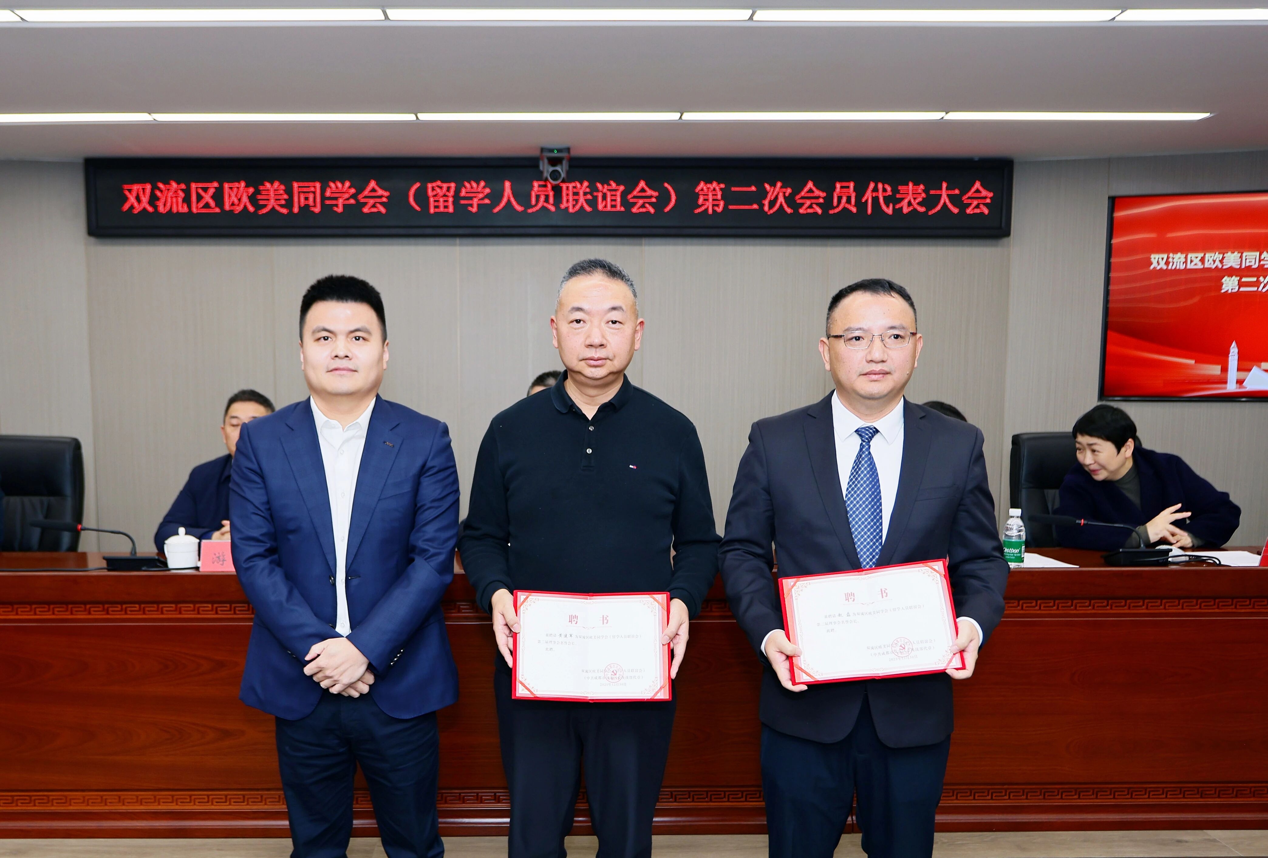 会上,游弋副会长为双流区欧美同学会(双流区留学人员联谊会)第二届理事会班子颁发证书,新当选会长孙磊为名誉会长颁发聘书并作表态发言。